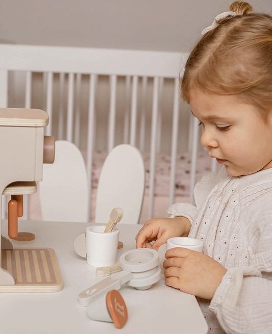 Houten espressomachine (verkrijgbaar in roze, beige en olijfgroen) | Label Label