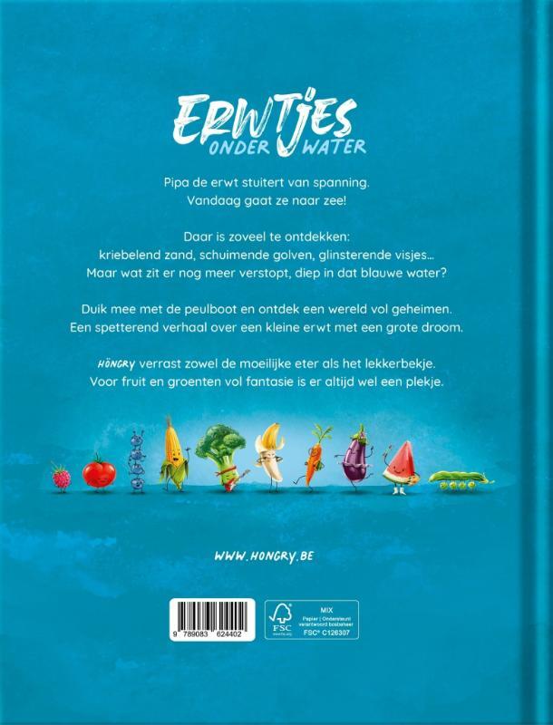 Pipa de erwt stuitert van spanning. Vandaag gaat ze naar zee! Daar is zoveel te ontdekken: kriebelend zand, schuimende golven, glinsterende visjes… Maar wat zit er nog meer verstopt, diep in dat blauwe water? Duik mee met de peulboot en ontdek een wereld vol geheimen. Een spetterend verhaal over een kleine erwt met een grote droom.