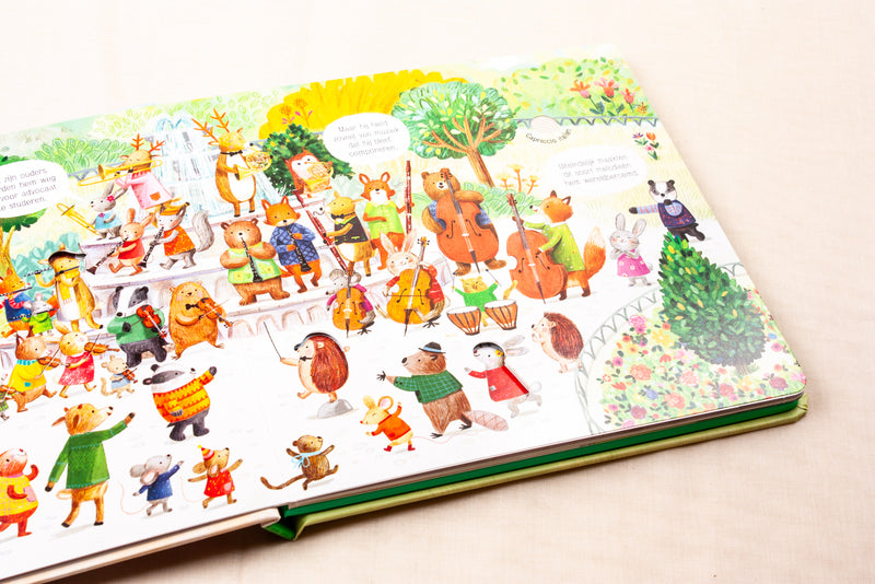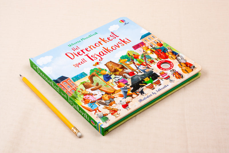 Als je op de knoppen in dit boekje drukt, hoor je vijf van Tsjaikovski’s mooiste stukken. Het orkest bestaat uit lieve dieren, getekend door Ag Jatkowska. Ze reizen door het bos en vertellen andere dieren over de componist. Met eenvoudige informatie over het leven van de componist.