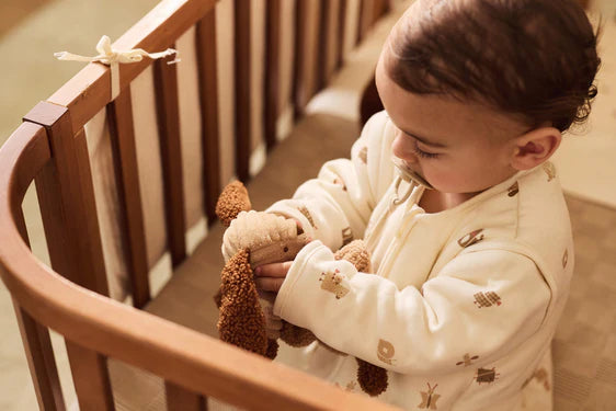 Dit schattige speendoekje van Animal Friends heeft de vorm van een lief hondje genaamd Diego. Het doekje is gemaakt van zachte ribstof in de kleur biscuit, met leather brown bouclé oren, handjes en voetjes. De geborduurde oogjes en het Jollein label geven het doekje een speelse uitstraling en zorgen voor urenlang knuffelplezier. Het koordje maakt het makkelijk om het doekje aan een speen vast te maken, zodat je kleintje deze altijd bij de hand heeft.