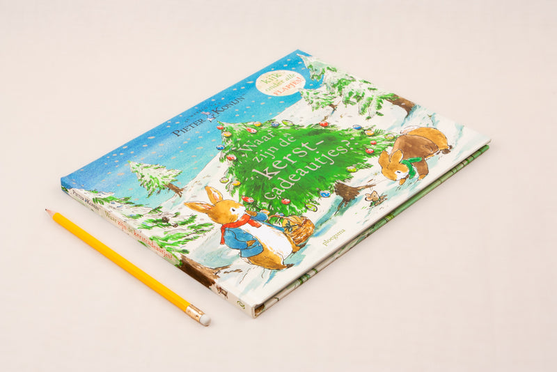 Pieter Konijn heeft de cadeautjes voor zijn moeder en zusjes ergens verstopt, maar waar ook alweer? Morgen is het al Kerstmis... Samen met de lezer gaat hij op zoek in het bos. Maar door de sneeuw ziet alles er ineens heel anders uit. Kijk onder de flapjes en zoek mee!