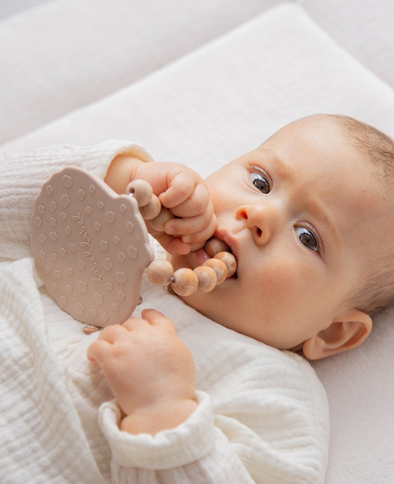 Siliconen bijtring schelp (verkrijgbaar in roze, beige en blauw)